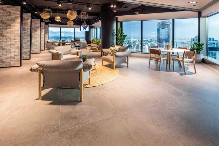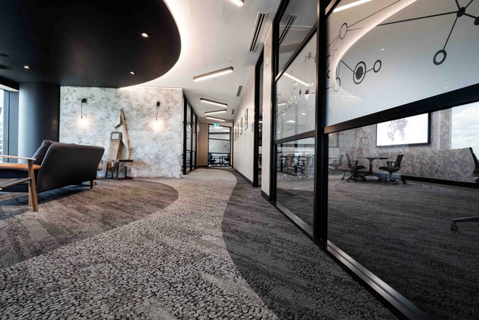 自然光是空間的一個(gè)主要特征,創(chuàng)造了溫暖而令人興奮的氣氛,讓人想起城市本身。通過對(duì)霓虹燈、銅管和城市元素等定制組件的比較,河流與城市景觀的關(guān)系,以及鵝卵石般的地毯紋理和顏色反映了布里斯班的河床、水和當(dāng)?shù)刂参铩?span style="font-size: 16px; font-family: 宋體; color: rgb(247, 150, 70);">#辦公室裝修公司#